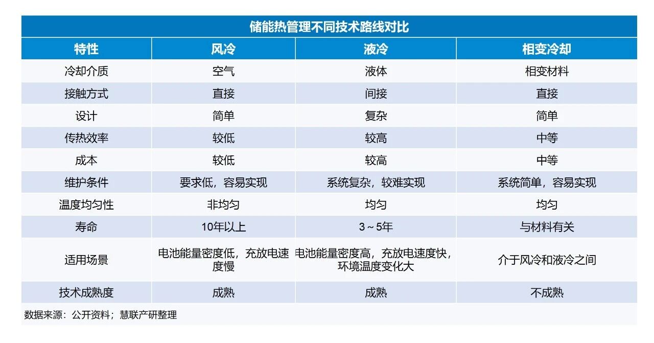 目前储能热管理主要采用风冷和液冷两种技术路线,其中风冷凭借成本优势在已投产项目中占据主流。相比之下,液冷方案在散热效果方面表现更优,各企业正加速将其应用于储能领域,预计渗透率将持续提升。而相变冷却技术因相变材料的性质控制与稳定性要求较高,技术实现难度大,目前尚未成熟。