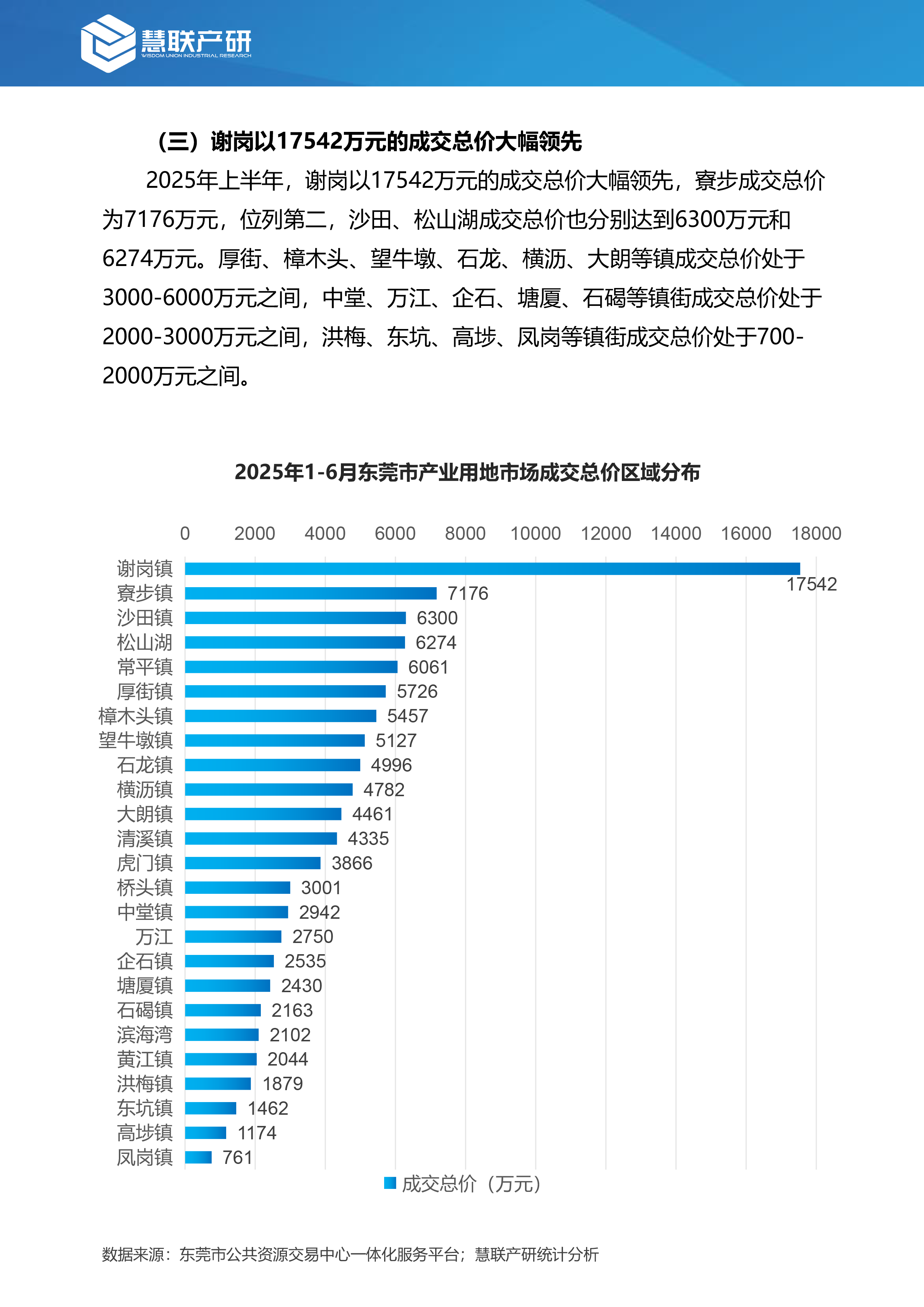 2025年上半年,东莞产业用地成交共41宗,合计出让用地面积约103.08万平方米(折合约1546亩),成交总价约10.73亿元,平均亩均地价约69万元/亩。