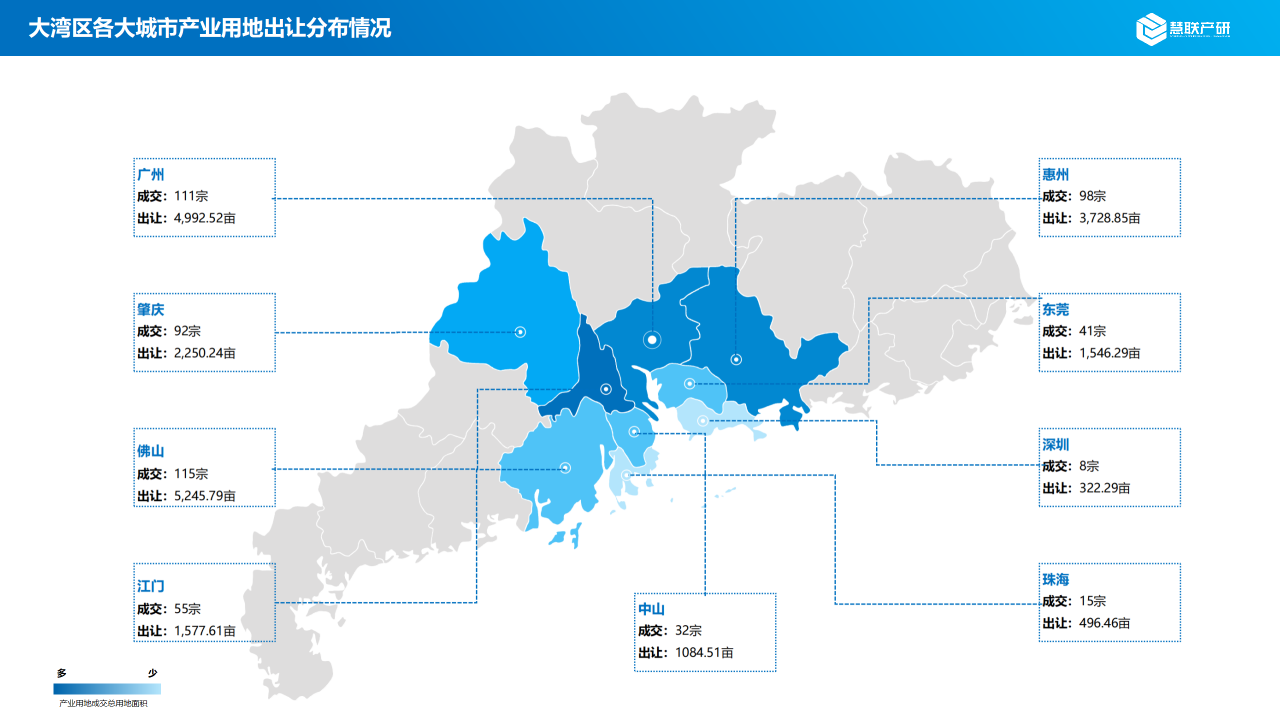 根据统计,2025年上半年大湾区9市产业用地市场共成交568宗地块,成交总用地面积为21,244.55亩;大湾区9市产业用地市场成交总价为167.31亿元,成交地面价约为73.87万元/亩。