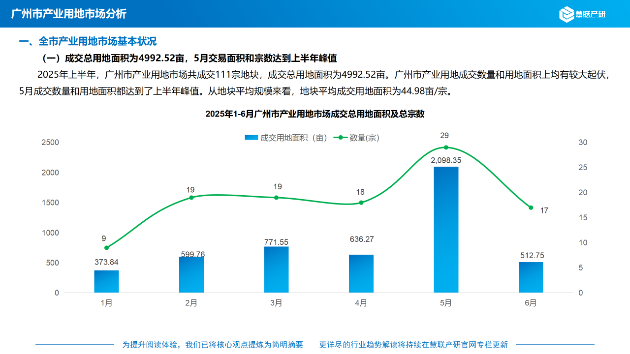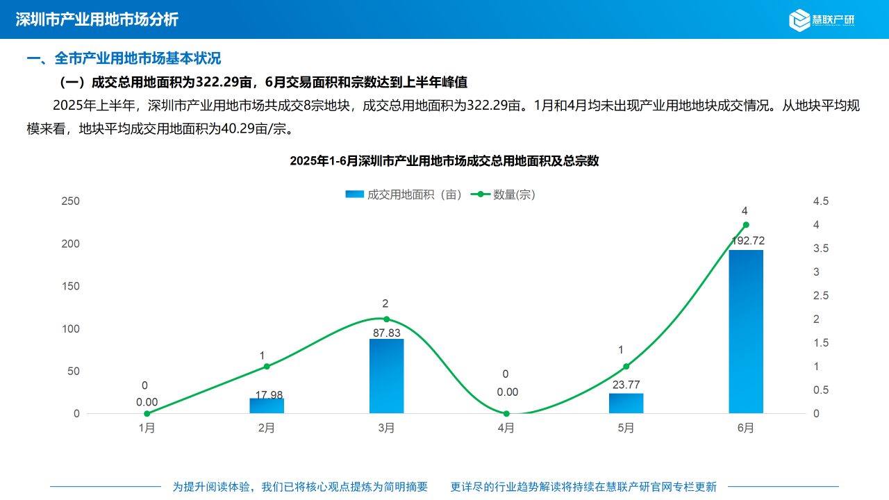 (一)成交总用地面积为322.29亩,6月交易面积和宗数达到上半年峰值