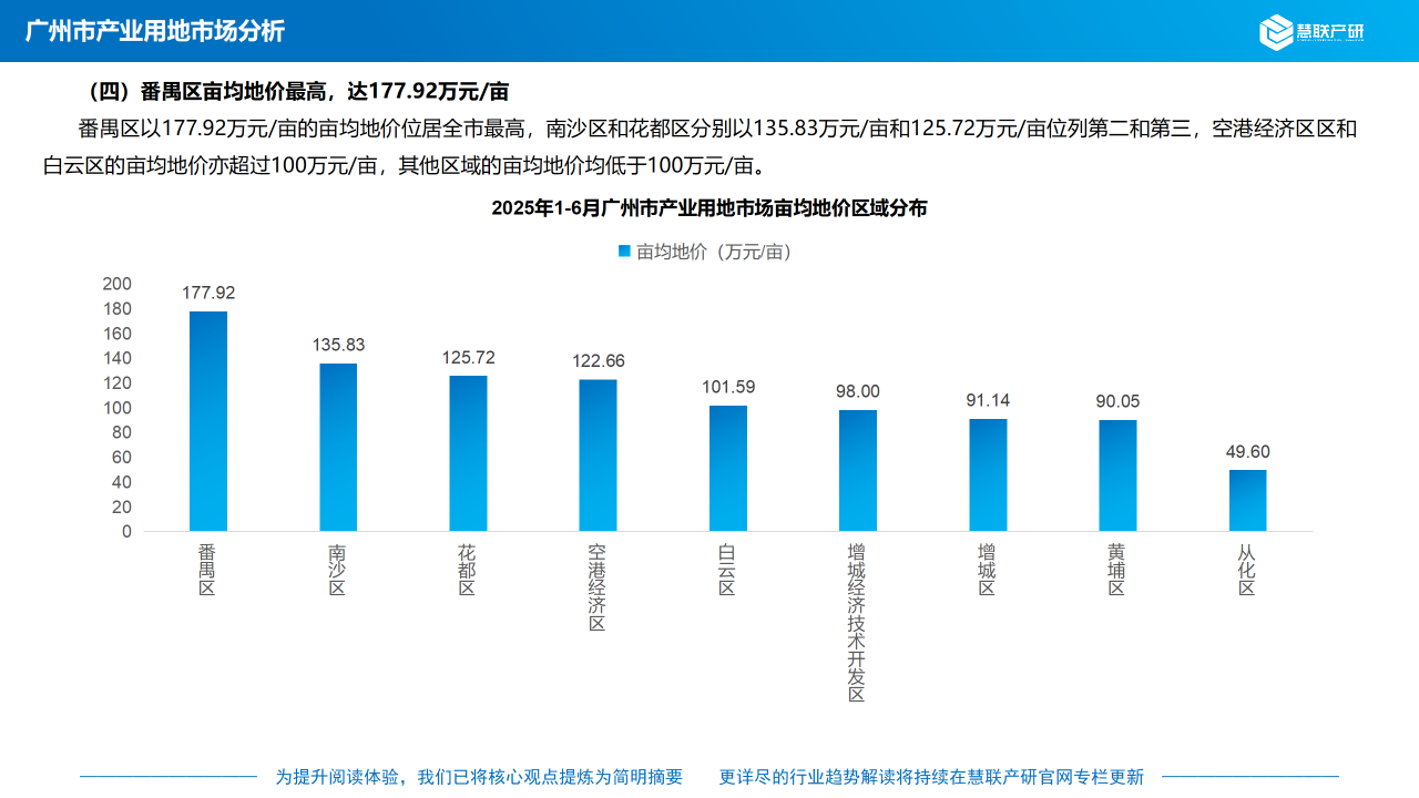 (四)番禺区亩均地价最高,达177.92万元/亩