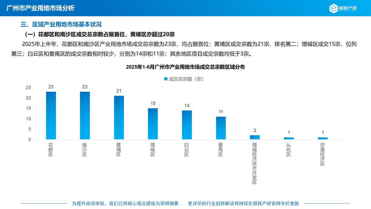 (一)花都区和南沙区成交总宗数占据首位,黄埔区亦超过20宗