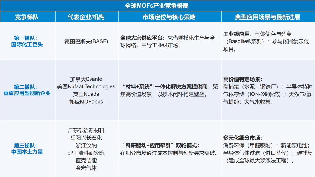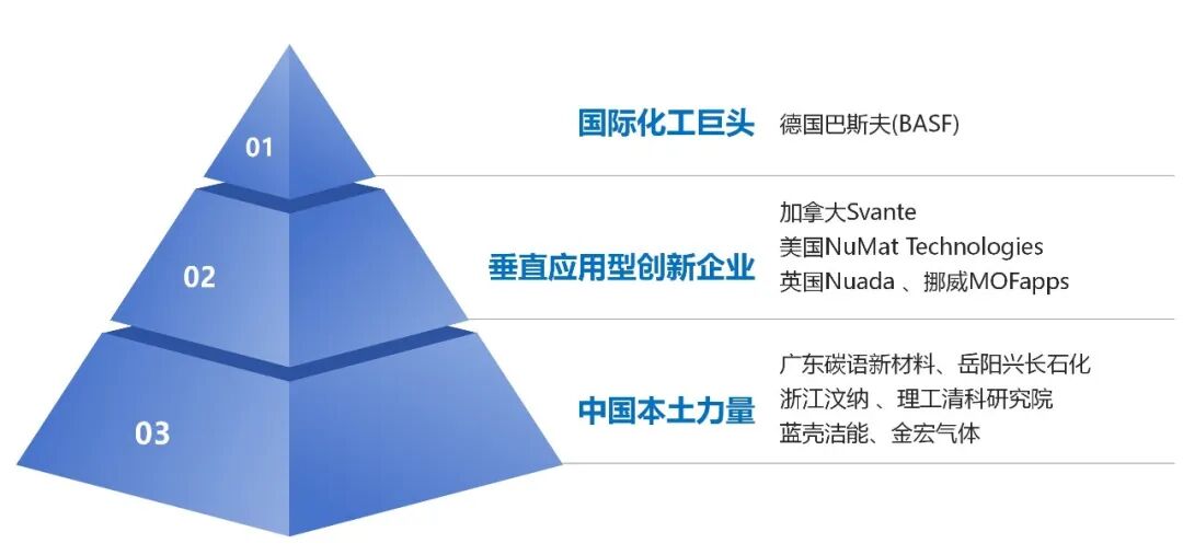 全球MOFs产业已形成清晰的“金字塔式”竞争格局,呈现“一超多强、垂直深耕、区域竞合”的特点。
