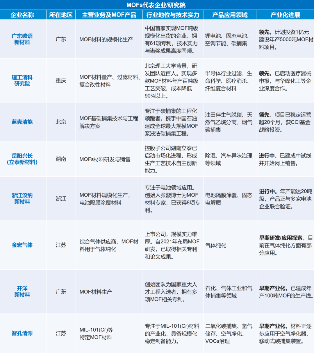产业链上,中国拥有全球最完整的化工原料供应体系,金属盐、有机配体等上游原料可本地化保障;中游涌现出碳语新材料、汶纳、理工清科、岳阳兴长等一批具备工程化能力的企业;下游则依托新能源汽车、半导体、环保装备等万亿级市场,形成强大应用牵引。