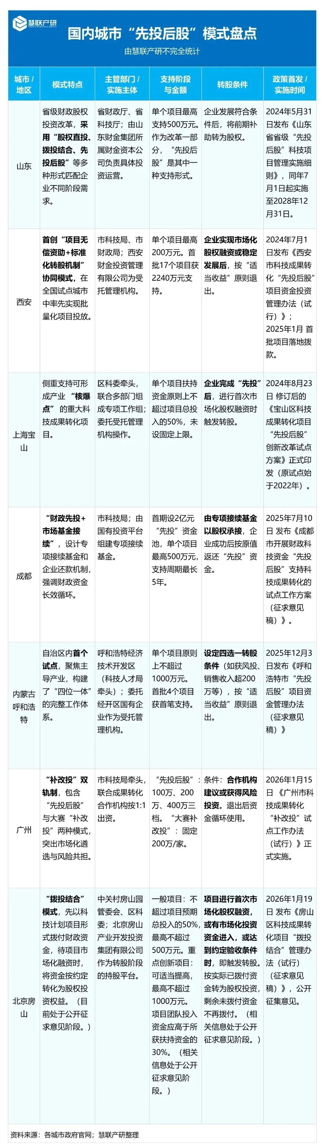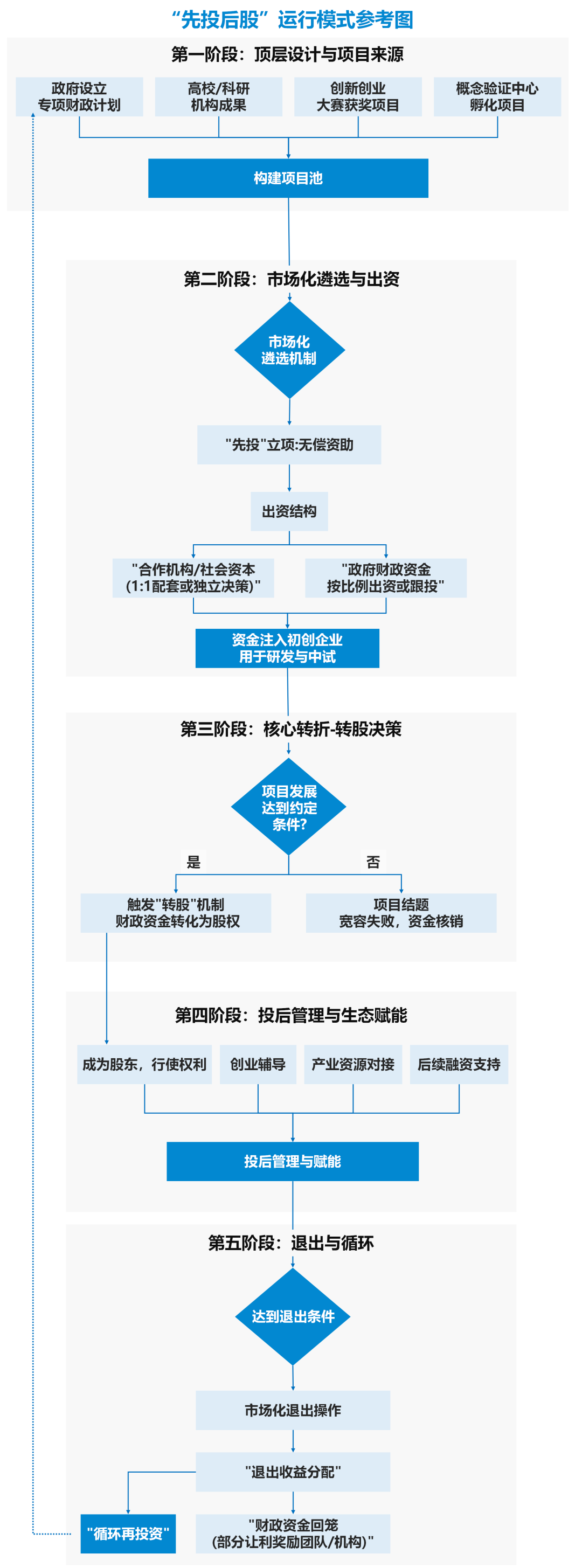 【在当前国家着力规范地方招商引资行为、纵深推进全国统一大市场建设的背景下,“先投后股”正日益成为各地探索高质量招商引资与科技成果转化的创新范式。这一模式精准聚焦于从实验室迈向生产线的关键节点,通过将财政资金由政府传统的“无偿补助”转变为“耐心资本”,为拥有硬核技术但缺乏资金的初创团队提供关键支持。】